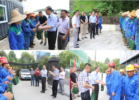 7月18日下午,市城投集团党委副书记、总经理章维明,副总经理杨波,携市城投集团副总工程师、投资发展部部长张磊,办公室主任助理沈陶专程到市环境集团慰问在高温下奋战的一线员工,市环境集团党委副书记、总经理姜俊,副总经理曹宏、张海华及总经办相关工作人员陪同慰问。